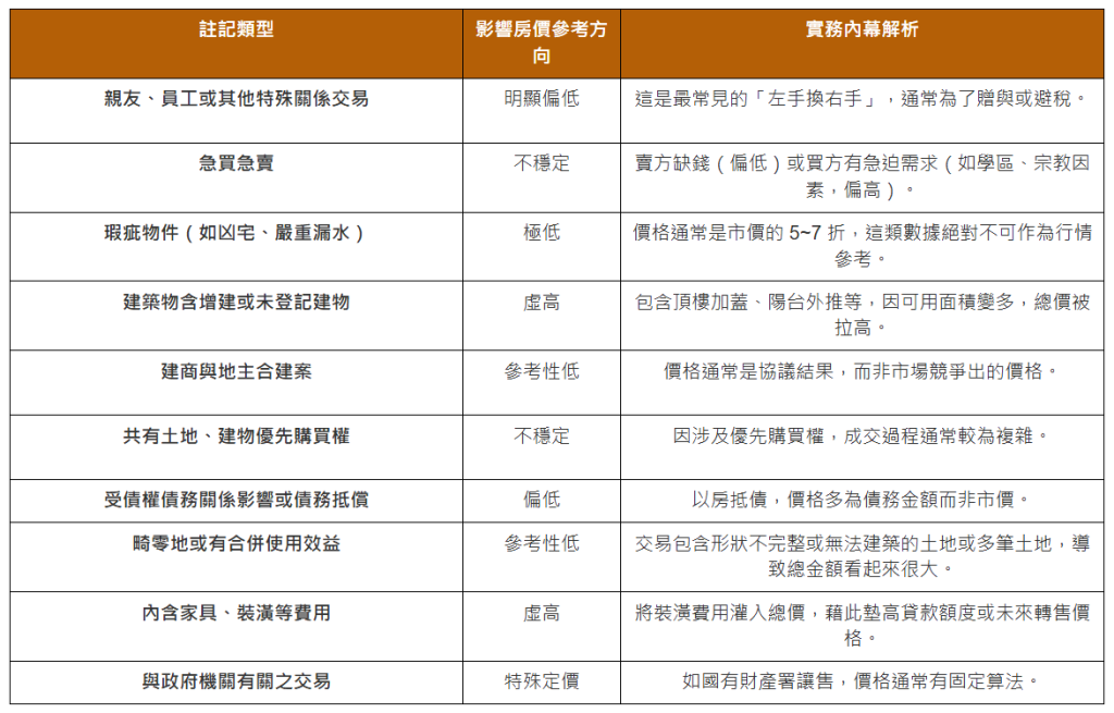 生活專題獅 實價登錄「特殊交易」是什麼?一表看懂備註欄 10 種秘密,別被極端房價誤導! 實價登錄「特殊交易」是什麼?一表看懂備註欄 10 種秘密,別被極端房價誤導! By 小粉獅 / 2026-03-13 在房地產市場中,數據是判斷的重要基準之一,但未經篩選的數據往往是危險的。許多購屋者在查詢實價登錄時,看到某社區出現驚人的低價,便以為撿到了崩盤的預兆;看到單價創新高,就急著追高上車。然而,這兩者可能都是「特殊交易」在作祟。根據地政事務所的規定,只要買賣價格明顯偏離市場行情,或是有非典型的交易條件,承辦人員就必須在備註欄中註記。這些註記就像是房屋交易的「身分證備註」,若沒看懂,你可能正拿著一份錯誤的考卷在複習。※由於相關法規皆會隨時調整異動,本文所提及之稅務、法律細節僅供參考,實務操作時務必以政府官方及銀行公告為準。 一、 解析常見的 10 種註記:備註欄裡的玄機為了幫助讀者快速過濾雜訊,我們將實價登錄中最常出現的 10 種特殊交易整理成表,並解析其對房價的影響:實價登錄備註欄常見註記一覽表 二、 數據背後的真相:為什麼含裝潢、家電會墊高單價?在近年的房貸限貸環境下,「含裝潢交易」已成為建商與投資客最愛用的合法灌水技術。1. 墊高總價,增加貸款額度舉例來說,一間房子市價 2,000 萬,買方自備款不足。建商與買方協議,將房價報為 2,200 萬,其中 200 萬註記為「裝潢費」。帳面效果:若銀行貸 8 成,2,200 萬可貸 1,760 萬;原本 2,000 萬只能貸 1,600 萬。買方變相多貸了 160 萬。風險:這種交易在實價登錄會顯示單價上升 10%。後續購屋者若只看單價,會以為行情漲了,殊不知其中含有大量水分。2. 虛擬的漲價錯覺實價登錄的系統在計算單價時,通常是「總價 ÷ 坪數」。若總價包含 200 萬的家具與高級裝潢,單價就會顯著跳升。銀行鑑價時會自動扣除這些「非固定動產」,但一般民眾若沒點開備註欄,很容易被單價嚇到,進而影響對該區域的估值。 三、 排除雜訊:教你如何篩選最具參考價值的行情身為一個聰明的買家,必須具備排除雜訊、篩選數據的能力。第一步:勾選「排除特殊交易」目前不論是官方的內政部實價登錄網或是民間的(如 樂屋網實價登錄、信義房屋等)查詢平台,大多設有過濾功能。操作重點:在搜尋條件中,務必勾選「排除特殊交易」。系統會自動隱藏親友交易、瑕疵物件等異常數據,留下來的才是真正的市場競爭價格。第二步:手動檢查「備註欄」有些交易雖然不屬於特殊關係,但仍會註記「含裝潢」或「急買」。檢核邏輯:單價異常高:檢查是否包含「頂加」、「露台」或「百萬精裝」。單價異常低:檢查是否為「持分買賣」(只買一半)或「建物不含土地」。第三步:善用「去車位」試算有些物件單價低,是因為車位坪數被計入。有些單價高,是因為車位報價過低。公式:單價 = (總價 – 車位價格) ÷ (總坪數 – 車位坪數)。將車位價格剝離,才能看出房屋真正的價格,進而判斷。 四、 案例分析:從備註欄看穿投資客的操作假設你在台北市南港區看中一個社區,發現最近有一筆成交單價 110 萬,比一年前的 95 萬漲了非常多。點開備註欄後發現寫著:「內含裝潢費用、冷氣設備、土地合併辦理」。這代表:價格不可直接引用:你必須扣除大約 15% 的溢價,才是該屋的原始地價與建價。銀行鑑價風險:如果你按 110 萬出價,銀行很可能只鑑價到 95 萬,導致你必須額外負擔 15 萬/坪的自備款缺口。 五、 結論:最好的行情,藏在被隱藏的備註裡實價登錄是購屋者的最強防護傘,但前提是你必須懂得看懂細節。不要只看首頁數字:單價只是結果,過程與備註才是真相。對極端值保持懷疑:太貴或太便宜的物件,90% 都有特殊原因。對比周邊社區:若某社區單獨暴漲,且備註欄空白,則需諮詢在地房仲了解是否有私下回扣或建商做價的可能性。掌握實價登錄備註欄的秘密,能在這個房市盤整期,精準避開價格陷阱,用最合理的行情買到心儀的家。 >>本文來自〈實價登錄「特殊交易」是什麼?一表看懂備註欄 10 種秘密,別被極端房價誤導!〉。由樂屋網授權轉載。 買房首購族的頭期款多少?第e理財網 帶你一鍵試算! 立即了解更多 Tags: 生活時事, 貸款授信 You may also like 狗狗口臭怎麼辦?3 大原因與改善方法一次看懂! By 小粉獅 / 2026-03-06 幼貓血便怎麼辦?5 個照護重點一次看懂! By 小粉獅 / 2026-03-02 65歲後變瘦別高興太早!營養師曝「身體崩盤前兆」保住老本這樣吃 By 小粉獅 / 2026-03-01 金馬年紫微運勢揭秘!財運旺不旺?桃花開不開?健康穩不穩? By 小粉獅 / 2026-02-23 速效解放整天工作的緊繃僵硬!2招翻轉手腕手臂遠離駝背、滑鼠手 By 小粉獅 / 2026-02-20 Post navigation Previous 川普強勢反擊!痛批最高法院關稅判決,宣布啟動替代關稅方案!