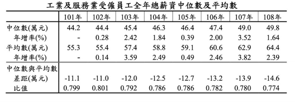 職場生存獅 你的薪水算中上嗎?4表看全台受雇員工薪資,過半碩士畢業者年薪高於95萬 行政院主計處公布最新薪資統計,年薪中位數在49.8萬元,來看你的薪資水平是位在哪個階段? By 小粉獅 / 2020-12-28 主計處公布2019年全台受雇員工薪資(工業及服務業) 年薪(含經常性與獎金等非經常性薪資)中位數為49.8萬元 ,換言之,有過半工作者年薪不到50萬元,但「高年薪族群」有三特色:研究所中位數年薪95.9萬元最高,500人以上企業薪資最高,40~49歲年薪最高。 主計處23日公布台灣工業及服務業全年總薪資中位數調查,平均每月約4.2萬元,比2018年增加1.64%,薪資為8年來最高。中位數是所有薪資最中間者薪資水準,換言之,有過半受雇員年薪不到50萬元,年薪平均數為64.4萬元,比2019年增2.39%。 以性別來分,2019年女性全年總薪資中位數為46.5萬元,男性為53萬元,男性仍比較高薪,但以中位數薪資增幅來說,女性高於男性,雙方薪資差距也逐漸縮小中。(女性2019年中位數年薪增加1.94%高於男性1.57%。)以年齡來分,各年齡層以 40至49歲者年薪中位數57.2萬元較高 ,未滿25歲者因多屬在學打工或初入職場階段,全年總薪資中位數為34.9萬元最低,40至49歲年薪57.2萬元最高,隨後又遞減,至65歲以上因多屬退休人口二度就業,總薪資中位數降為40.4萬元。 以教育程度來分, 以研究所程度者年薪中位數達95.9萬元最高 ,其次是大專程度53.9 萬元較高,高中跟國中學歷的年薪都落在總受雇人年薪中位數之下。 以廠商規模來說,越大的企業能給的薪水愈高。薪資水準隨僱用員工規模擴大而增加,500人以上廠商受僱員工全年總薪資中位數69.3萬元,100~499人規模企業年薪相近,員工規模4人以下者為35.5萬元最低。 以產業別來說,電力及燃氣供應業受僱員工年薪中位數112.4萬元最高,金融及保險業94.8萬元,次之,出版、影音製作、傳播及資通訊服務業70.4萬元第三名,意外比醫療保健業64.5萬元多;而藝術娛樂及休閒服務業、住宿及餐飲業、其他服務業、教育業(不含公私立學校等)年薪都未達40萬元,主計處指出,部分原因可能是大量聘僱部分工時員工壓低水準。 本文經數位時代同意授權轉載 ▼已經是一銀薪轉戶的好友們,趕快登入「薪轉戶專區」體驗超貼心的服務▼ 點我體驗 Tags: 職場學 You may also like 寫給時間永遠不夠用的你 By 小粉獅 / 2025-12-12 別讓退休變成臥床人生!日本點名高齡失能4大關鍵,快做這些事存健康老本 By 小粉獅 / 2025-12-08 別讓忙碌耗盡你——安靜與覺知是最簡單的救援。 By 小粉獅 / 2025-12-07 有讓人稱羨的工作和生活,為何還是不快樂?擺脫 KPI 思維,讓內心告訴你該過什麼日子 By 小粉獅 / 2025-11-23 迷惘是遇見嚮往的起點 By 小粉獅 / 2025-11-09 文章導覽 完善衣櫃設計,讓你的衣服不再大爆炸【懂吧】2021連休行事曆,你存好了嗎?